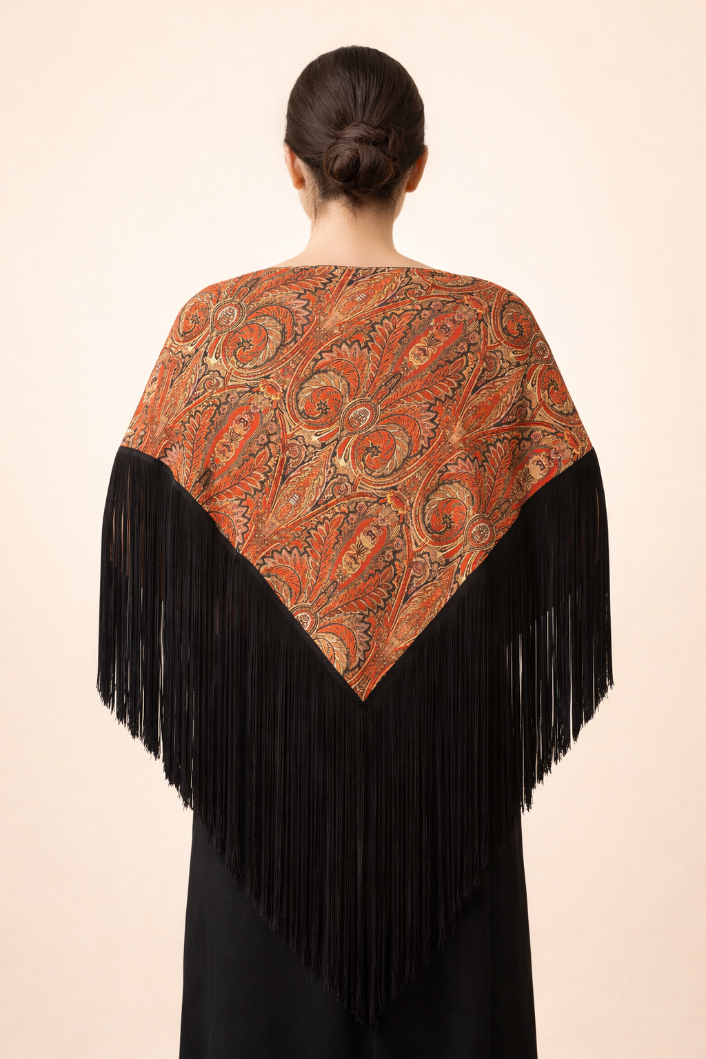 Pañuelo regional Una joya artesanal confeccionada a mano, con flecos de seda que dan movimiento, brillo y una elegancia única.
