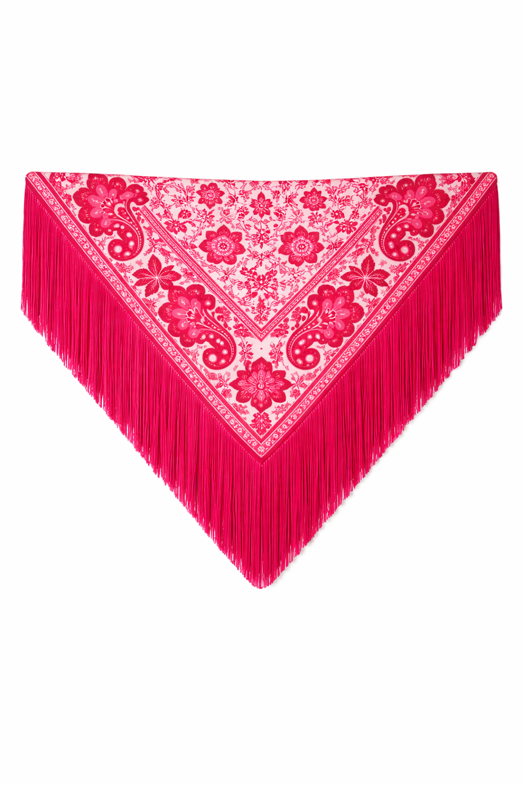 pañuelo con flecos de seda de 50 cm fucsia .